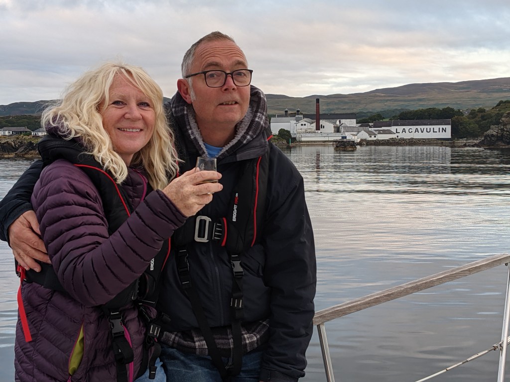 September 2021. We had arranged to pick Richie up in Stranraer so set off from Port Ellen, Islay, at sunrise with a quick stop for a photo opportunity outside the Lagavulin distillery. See Whisky Galore.