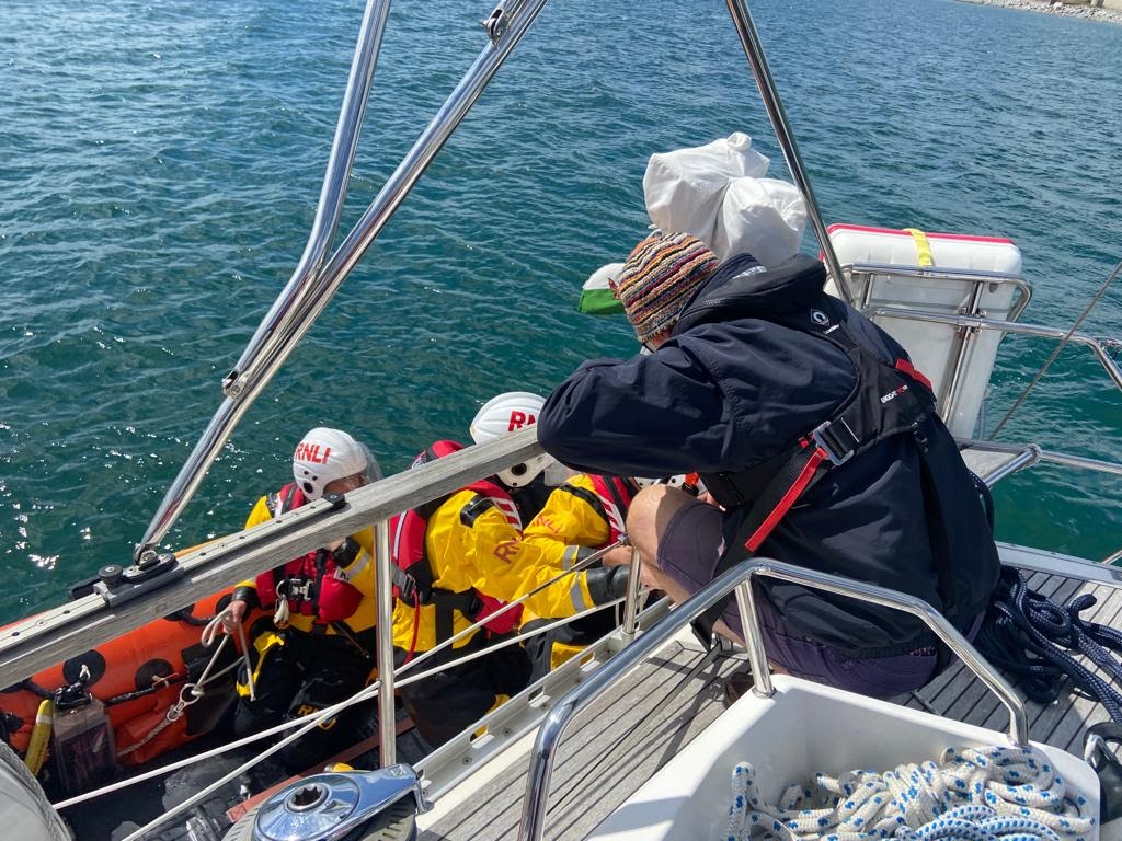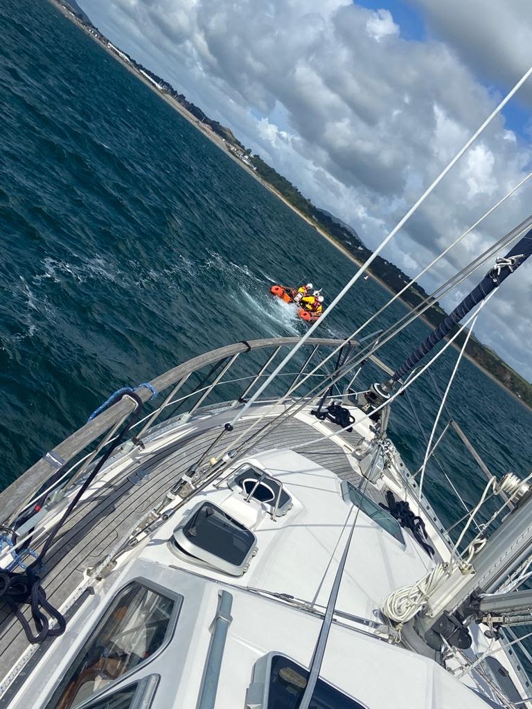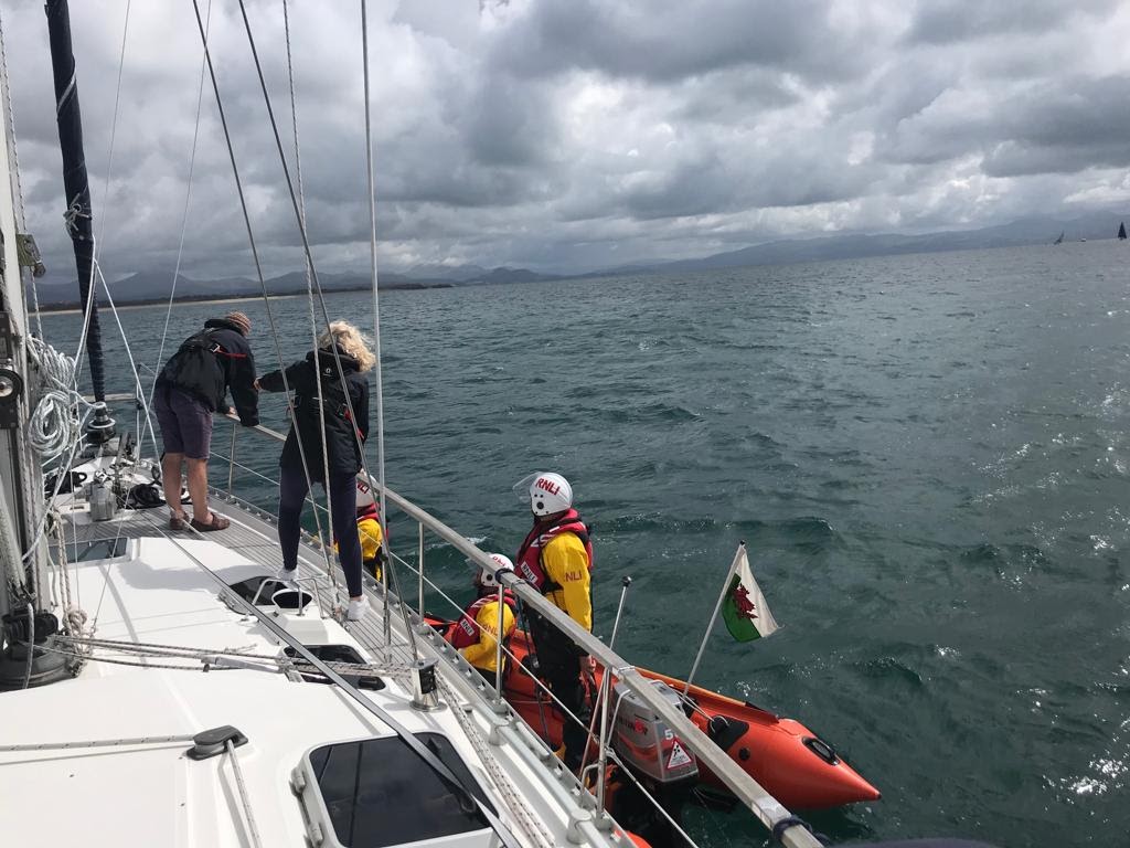Well in this case it was the prop shaft that fell off. We were on our way to Ireland when the 4 bolts of the flexible coupling failed. This is the thing that connects the prop shaft to the gearbox so we had no engine and had to turn around, sail back to Pwllheli, drop the anchor and wait for the RNLI to come and tow us back into the marina. (They were quicker than the RAC, thank a squillion chaps)